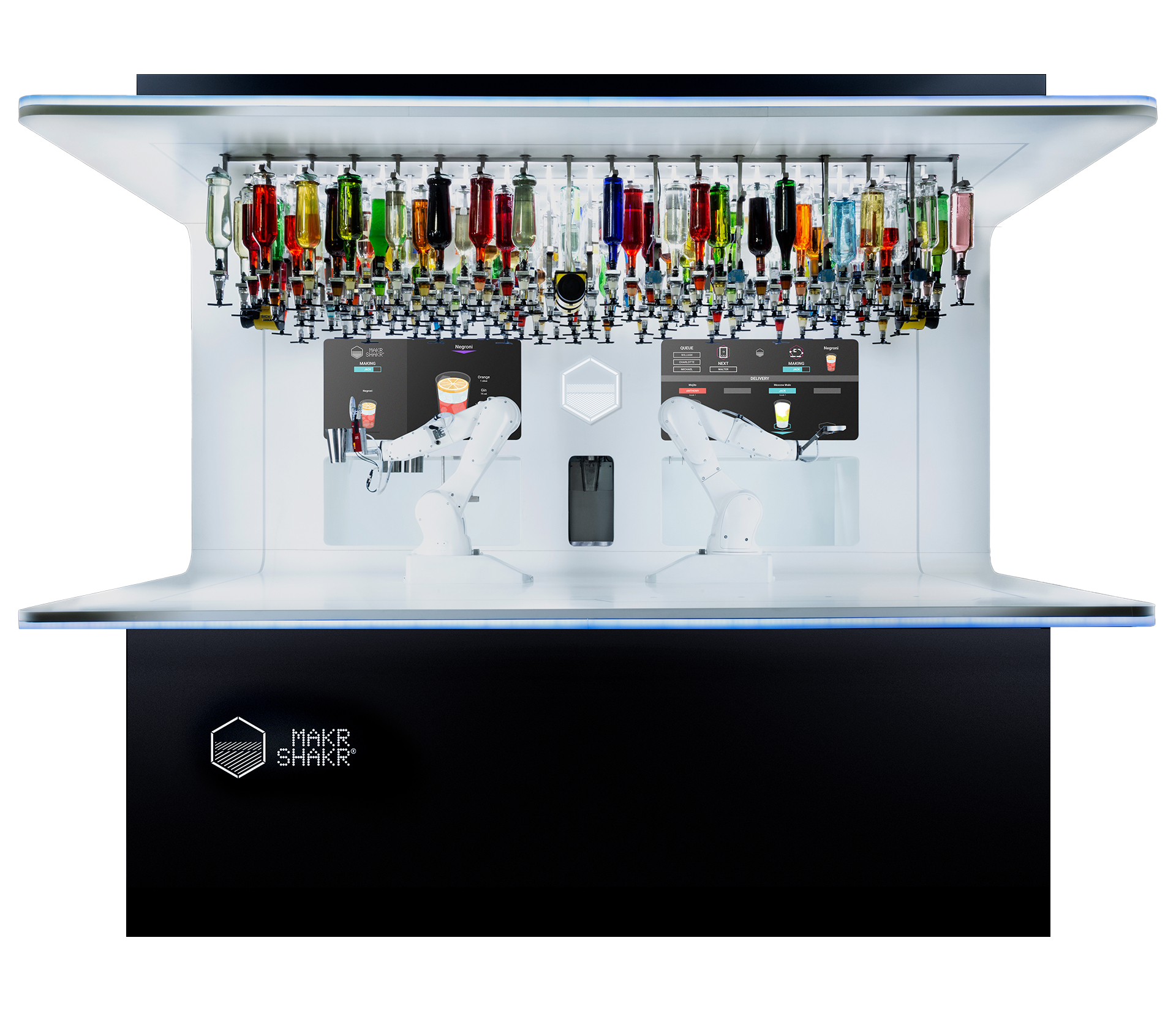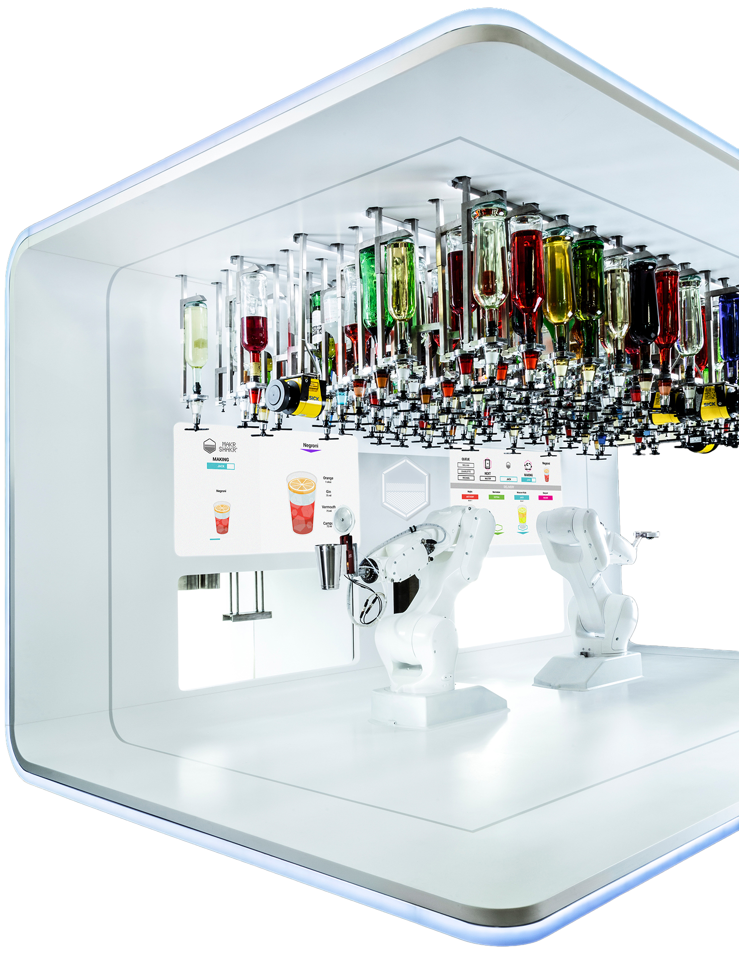 Makr Shakr’s robotic bartenders are produced from scratch in its factory in Italy. Born in the hands of expert designers and mechanics, the robots boast the beauty of Italian design and exceptional performance indicative of modern technology.
